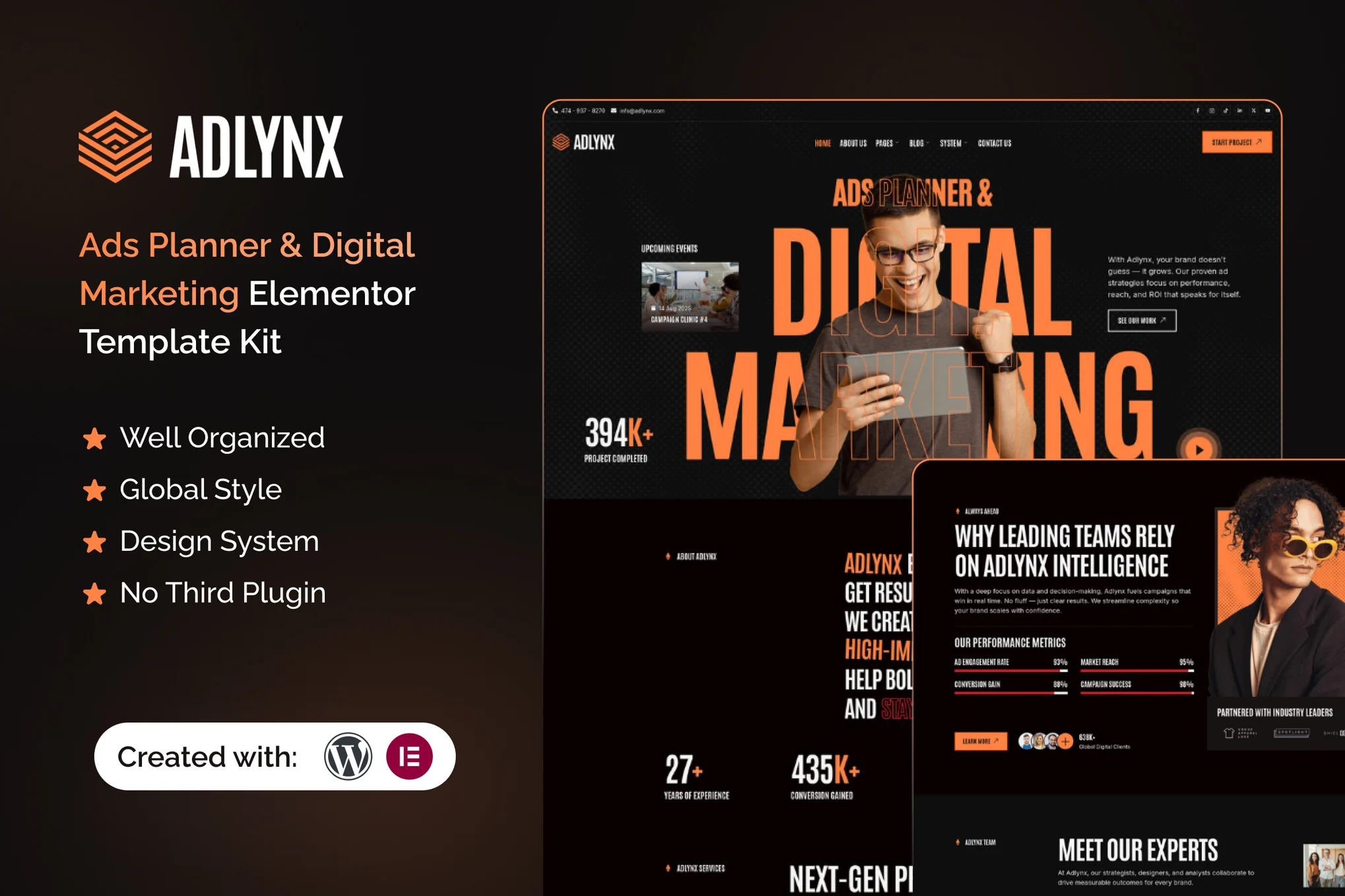 Adlynx is an Elementor Template Kit for Ads Planners & Digital Marketing Agencies websites built in WordPress.