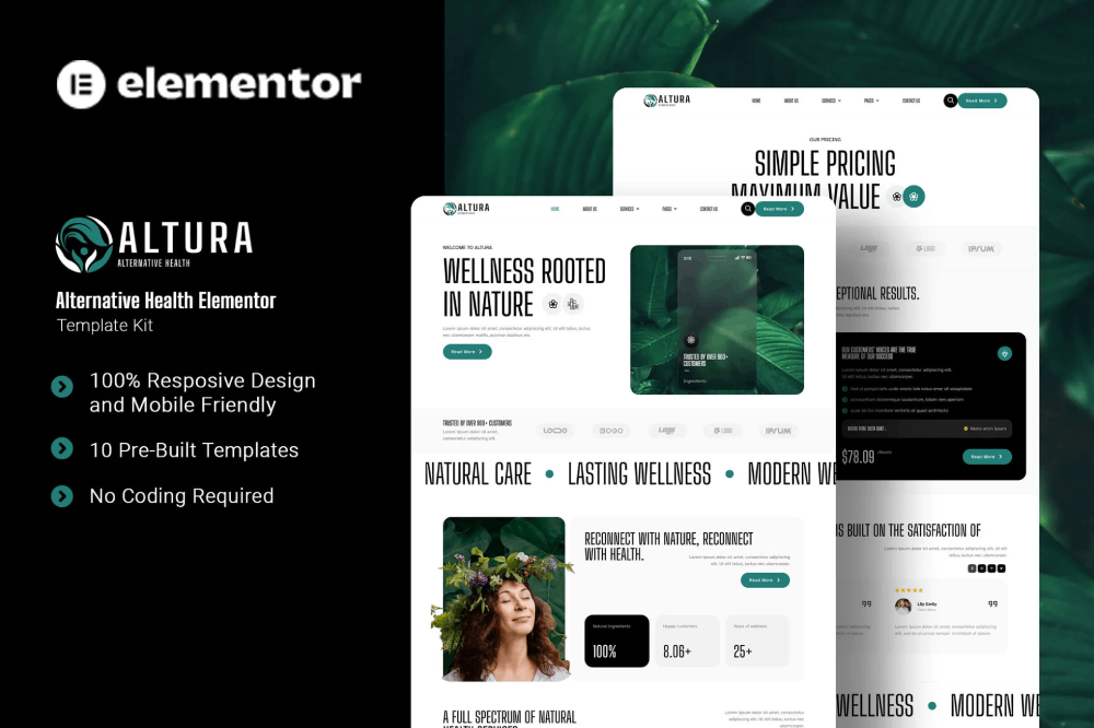 Altura is a modern and professional Elementor Template Kit designed for alternative health and holistic wellness websites. Perfect for wellness practitioners, natural therapy centers, and holistic health coaches, this kit helps you present your services with clarity, share your expertise, and inspire healthier lifestyles. With its clean design and user-friendly layout. Altura uses free elements, so don’t worry about trying this one. Altura provides various pages including Home, About Us, Services, Single Services, Pricing, Event, Review, FAQs, Blog, 404, Contact Us.