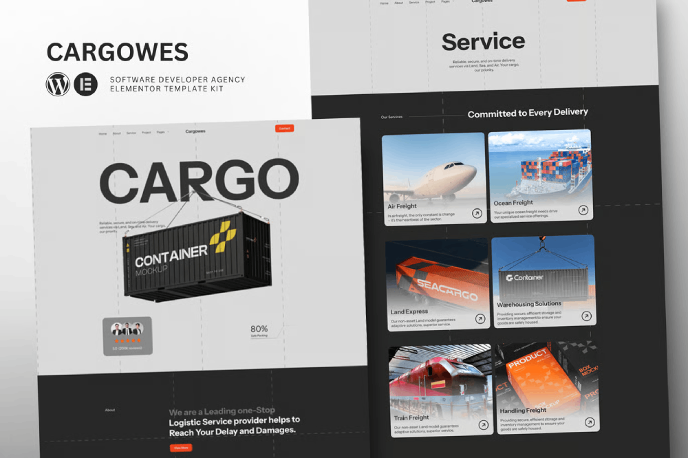Cargowes – Logistic & Cargo Transportation Elementor Template Kit is a collection of layouts for the Elementor page builder WordPress plugin, designed for use with Elementor Free Version for a clean Design. It works with most themes and is optimized for use with the free Hello Elementor theme.