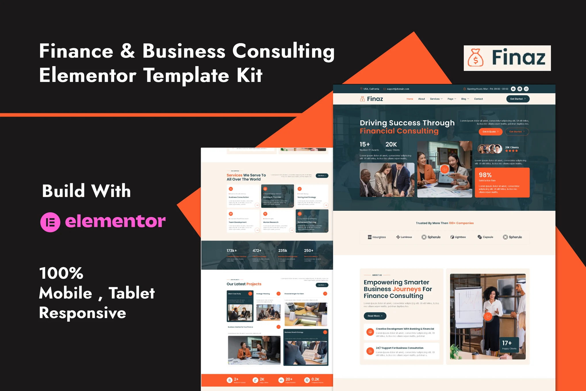 Finaz – Finance & Business Consulting Elementor Template Kit is designed for agency, business, company, consulting, corporate, digital agency, finance, financial, marketing, and all other agency websites without a single line of coding!