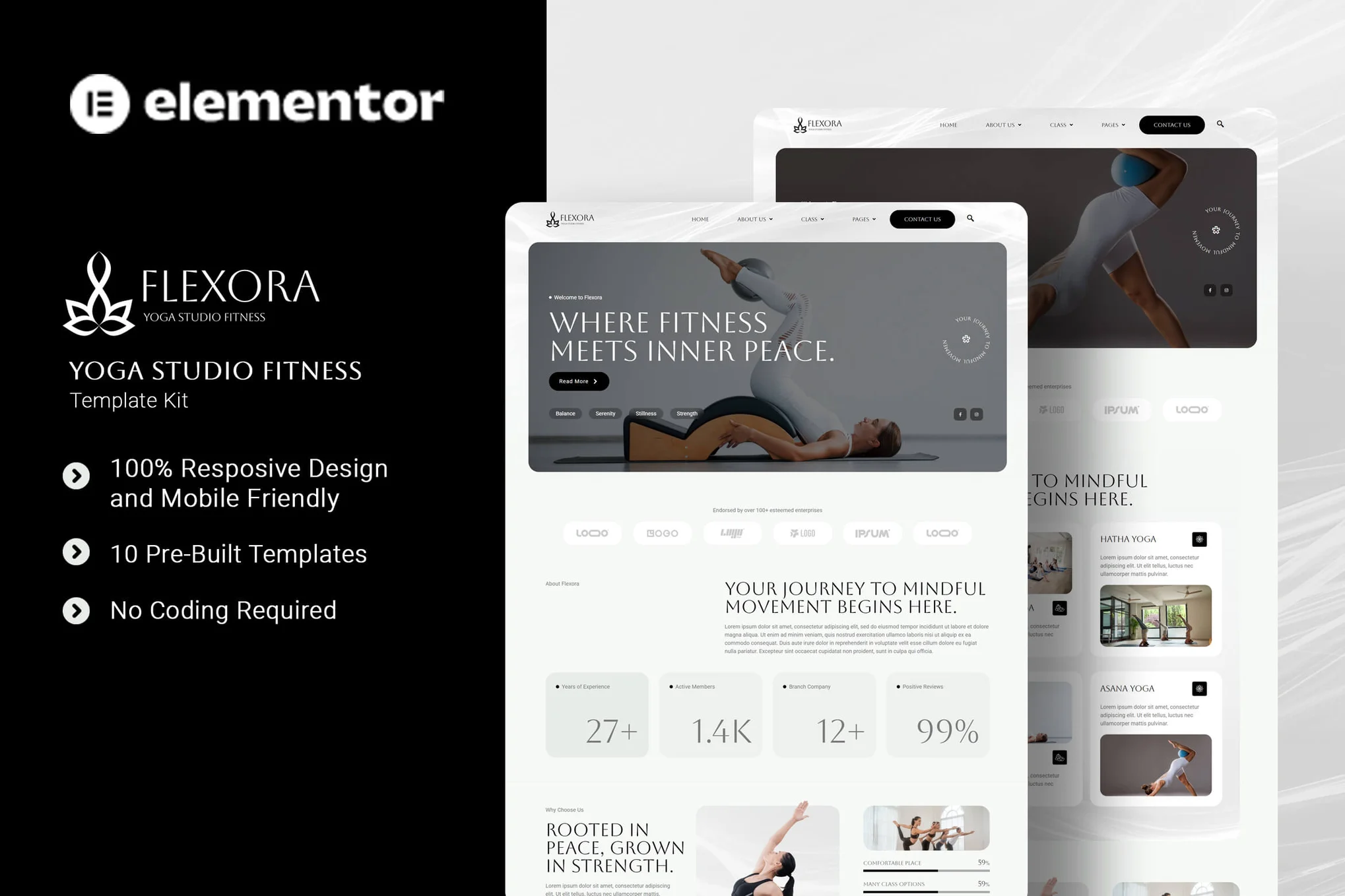 Flexora is a modern and professional Elementor Template Kit designed for yoga studio and fitness websites. Perfect for yoga instructors, wellness centers, and fitness studios, this kit helps you present your classes beautifully, highlight your philosophy, and inspire clients to embrace a balanced lifestyle. With its calming design and intuitive layout, Flexora ensures your brand reflects serenity, strength, and holistic well-being in every session. Flexora uses free elements, so don’t worry about trying this one. Flexora provides various pages including Home, About Us, Team, Classes, Class Detail, Pricing, FAQs, Blog, 404, Contact Us.