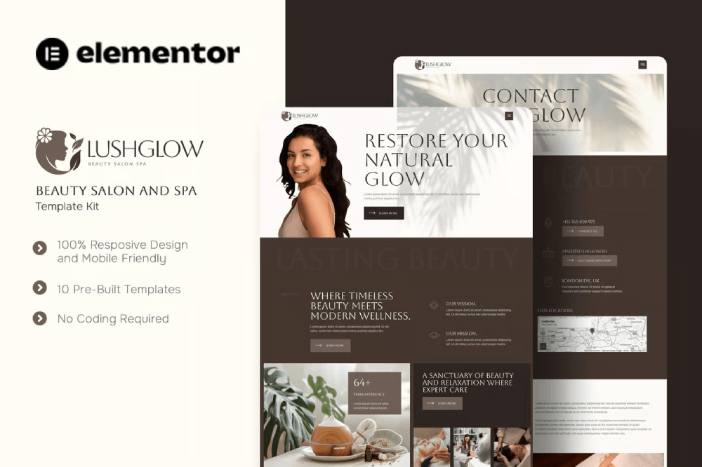 Lushglow – Beauty Salon & SPA Elementor Template Kit