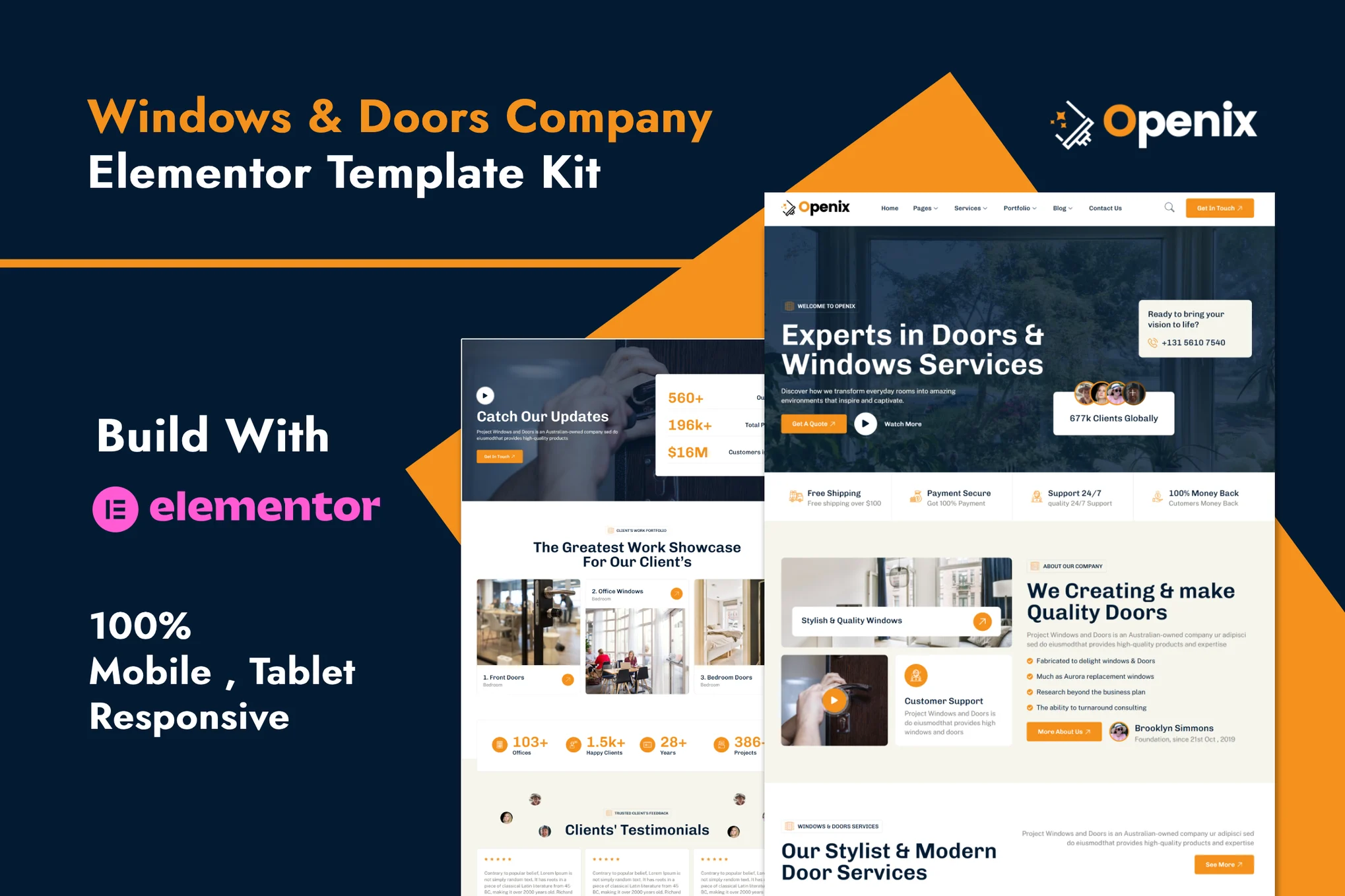 Openix – Windows & Doors Company Elementor Template Kit designed for stores of windows & doors, repair & maintenance services, design and architecture firms, construction bureaus, individual designers company and architects, and bloggers who are into interior design, home renovation