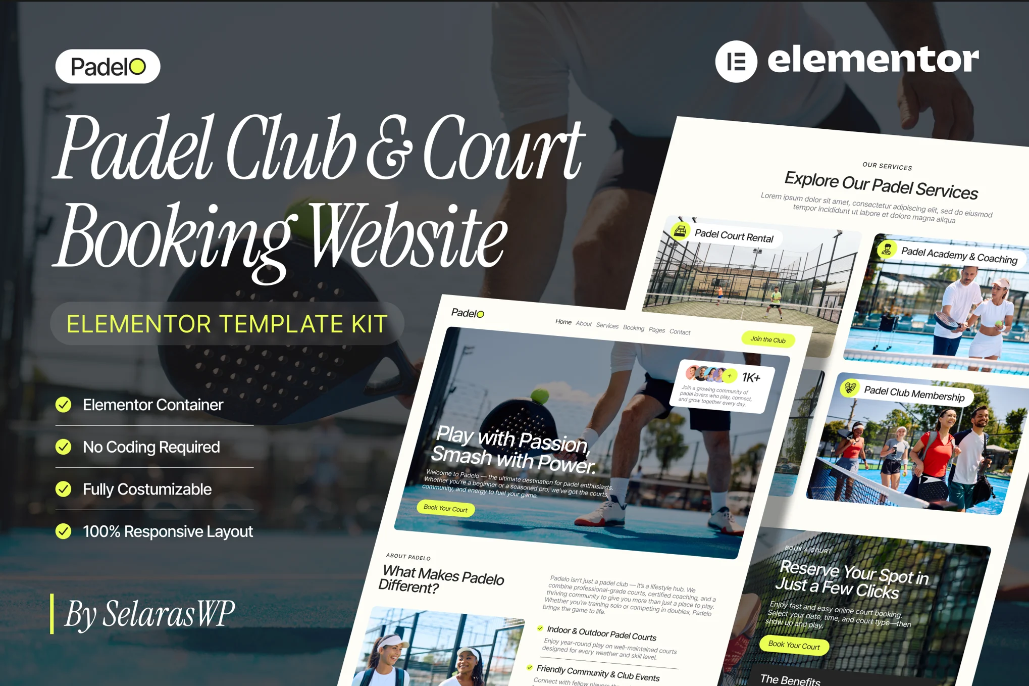 Padelo is a modern and professional Elementor Template Kit designed specifically for padel clubs, tennis clubs, sports centers, and court booking businesses. Built with the user in mind, Padelo offers a stunning visual design combined with a seamless user experience, allowing you to create a full-featured website without writing a single line of code.