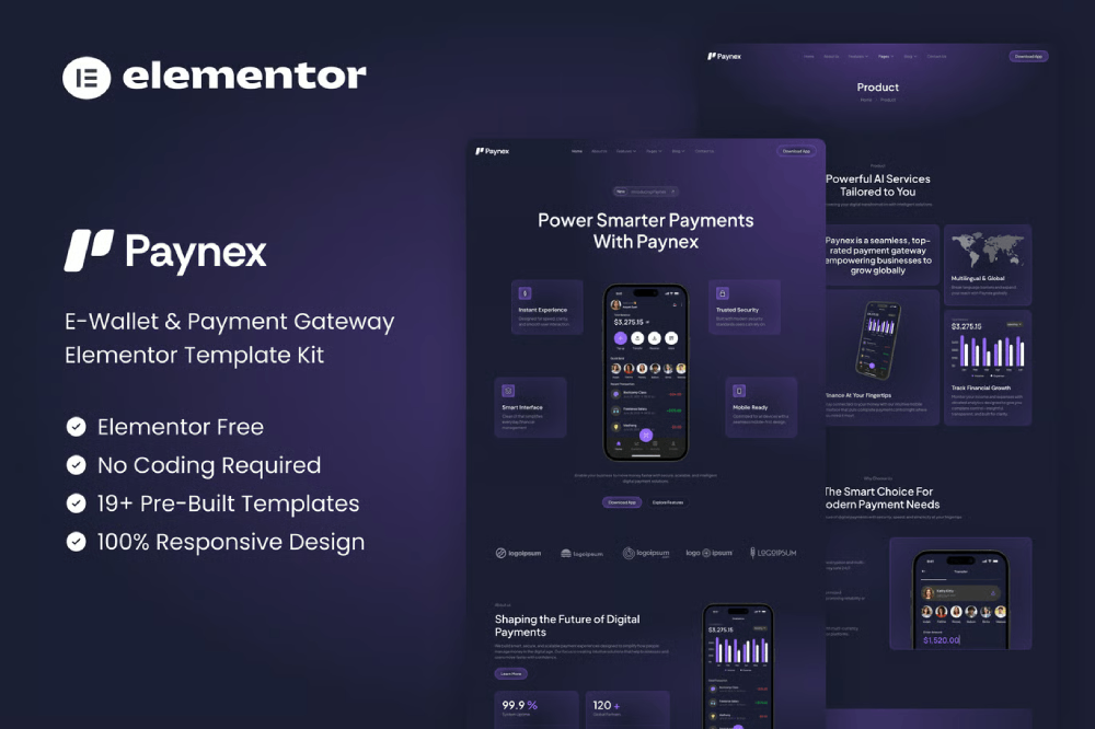 Paynex – E-Wallet & Payment Gateway Elementor Template Kit is a modern and professional solution designed for fintech startups, digital wallets, payment gateways, and financial technology companies. With a clean UI and conversion-focused layouts, Paynex helps you present your services, features, integrations, and pricing clearly while building trust with users and partners.
