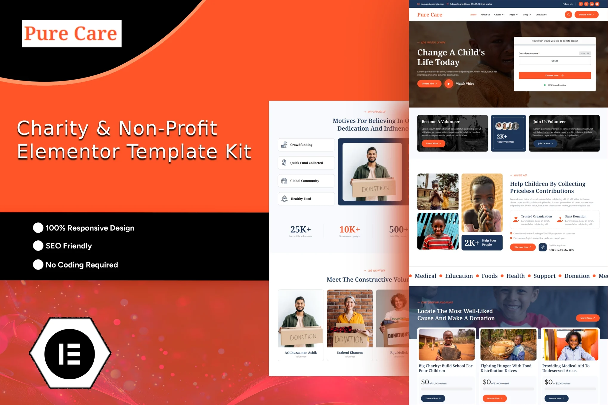Purecare – Charity Elementor Template Kit