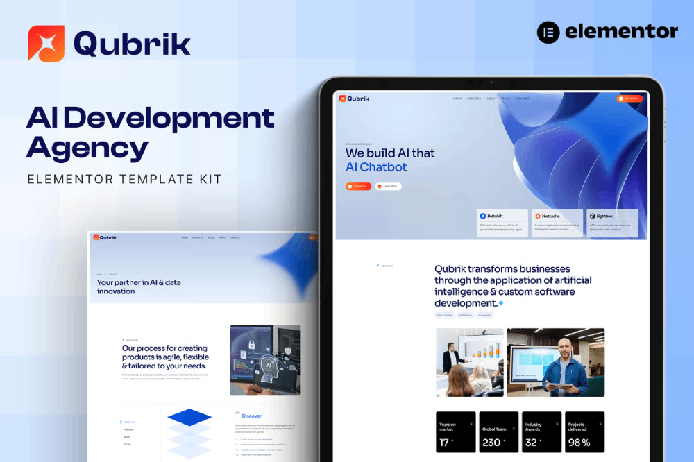 Qubrik – AI Development Agency Elementor Template Kit is created especially for Artificial Intelligence, AI Agency, AI Business, Digital Agency, and SaaS, or any type of business that wants to publish their services in a professional way. Qubrik has a simple, modern, and clean design with a 100% responsive layout, and it is very easy to customize, making it accessible to anyone without needing to understand coding.